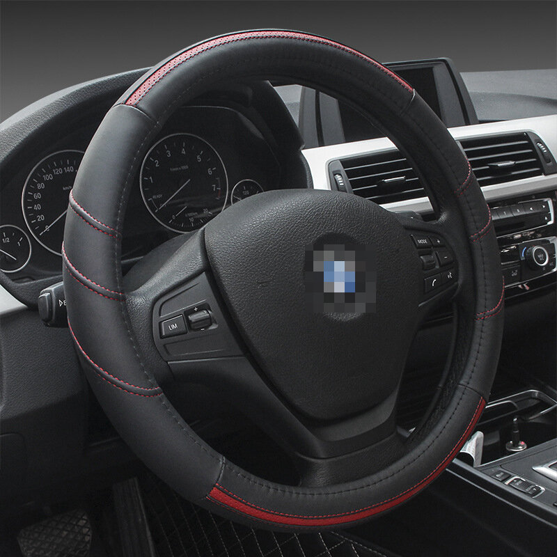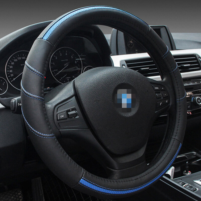 38CM Car Steering Wheel Covers Four Seasons Universal Leather Car Cover – Blue