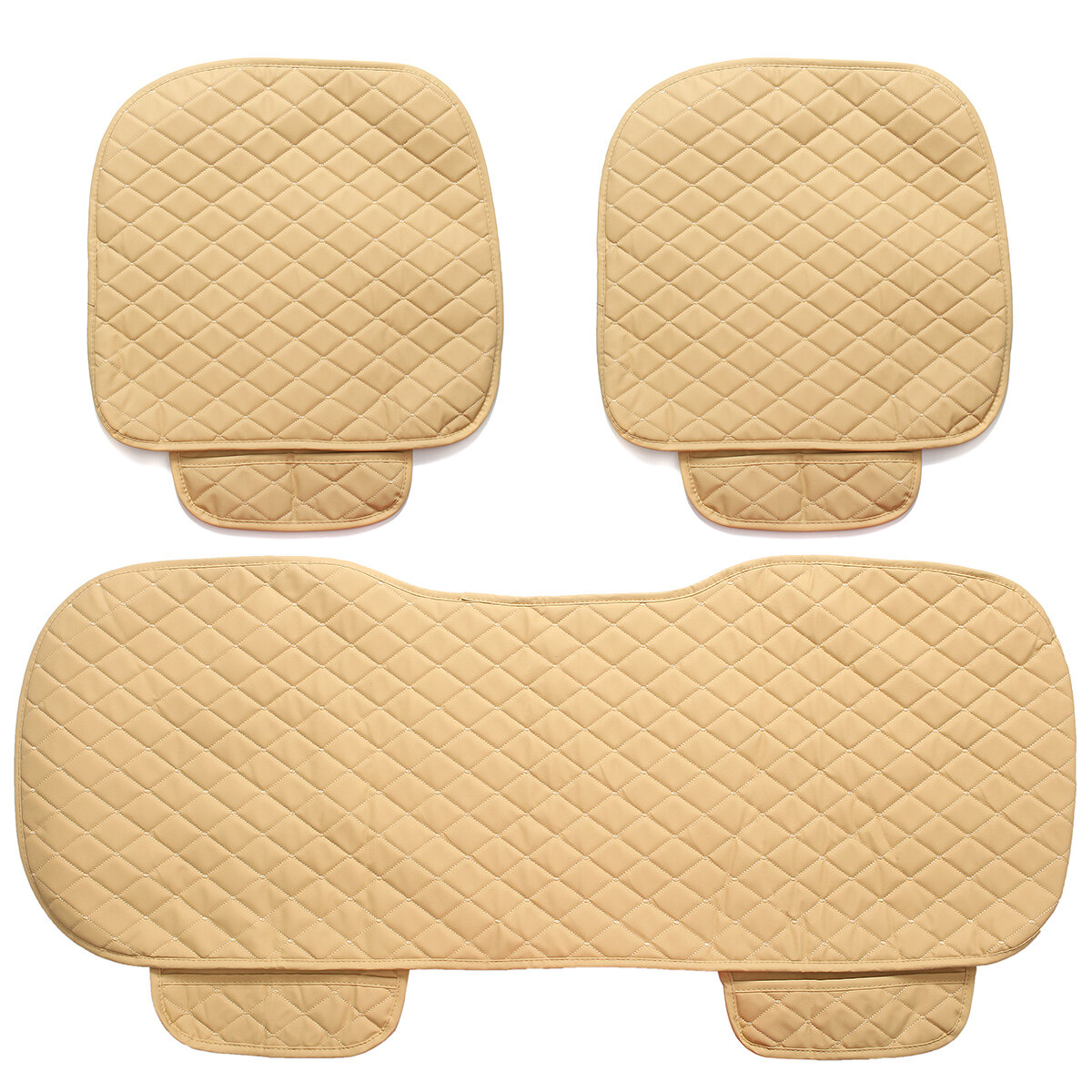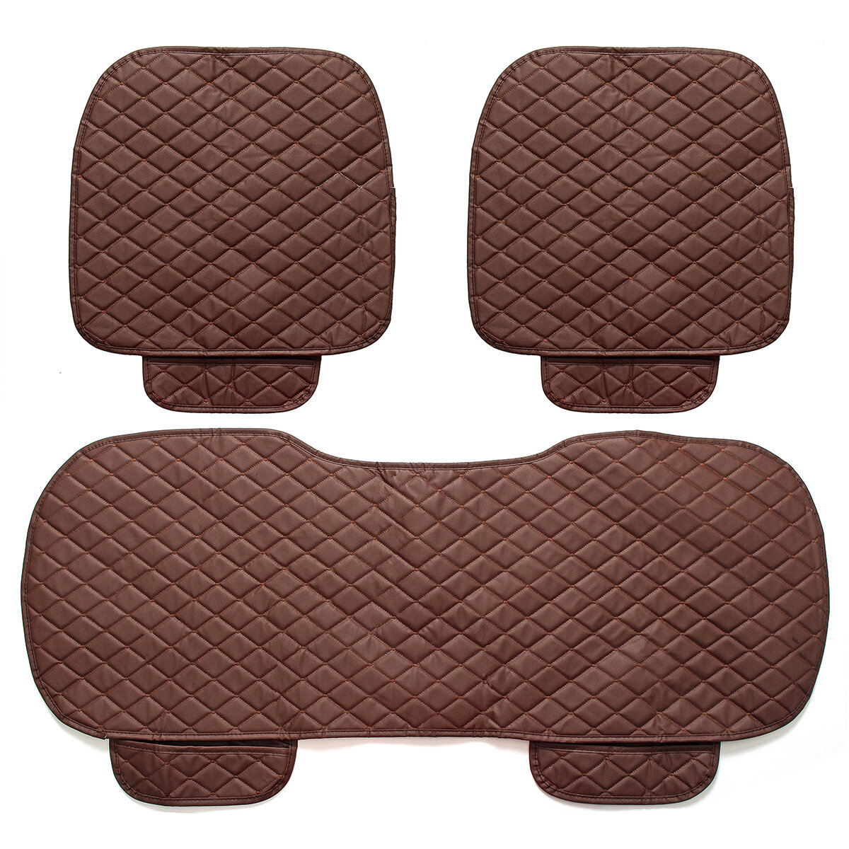 3Pcs Car Seat Cover Universal PU Leather Protector Cushion Front Rear – Beige