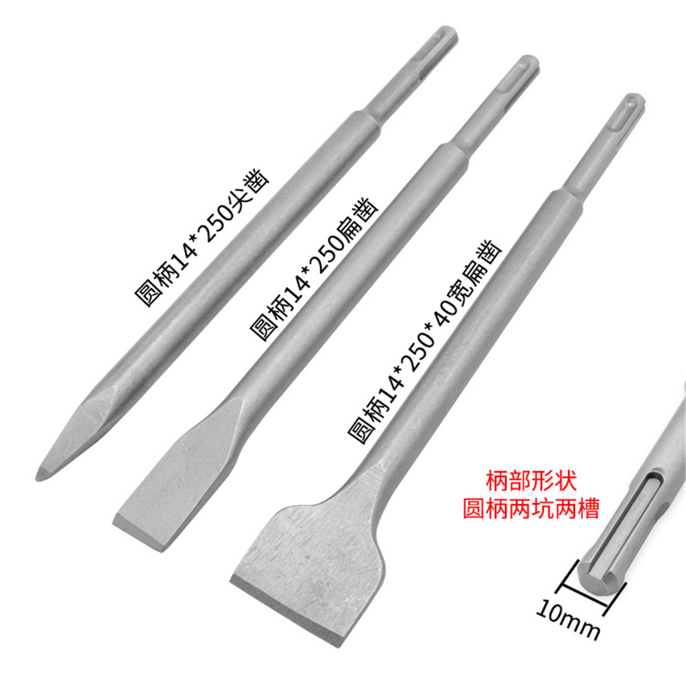 3pcs Electric Hammer Chisels Round Shank Flat Impact Drill Bit For Concrete Wall Excavation
