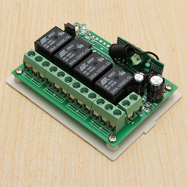 C'est un code d'apprentissage sans fil de commande e distance (recepteur), le chemin de sortie / maniere de travail peut etre change comme vous le souhaitez, il est facile de correspondre e l'emetteur. Il dispose de 4 relais qui peuvent faire tourner ou inverser l'equipement, on / off et ainsi de suite viennent vrai. Le volume est petit et la performance est stable et fiable, la sensibilite de reception elevee.