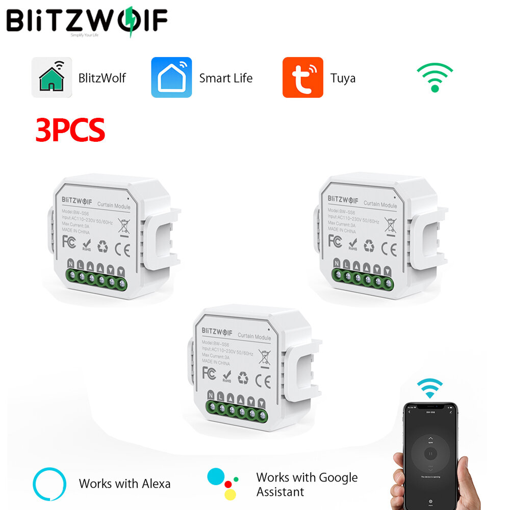 [3PCS] Module de rideau intelligent WIFI BlitzWolfe BW-SS6 APP Telecommande Timing Ouverture/Fermeture Fonctionne avec Google Assistant Amazon Alexa