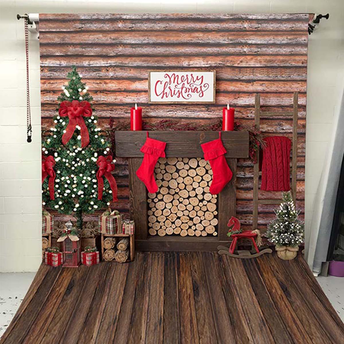 3x5FT 5x7FT 6x8FT sol en bois mur joyeux Noel arbre photographie toile de fond fond Studio Prop – 1.5×2.1m