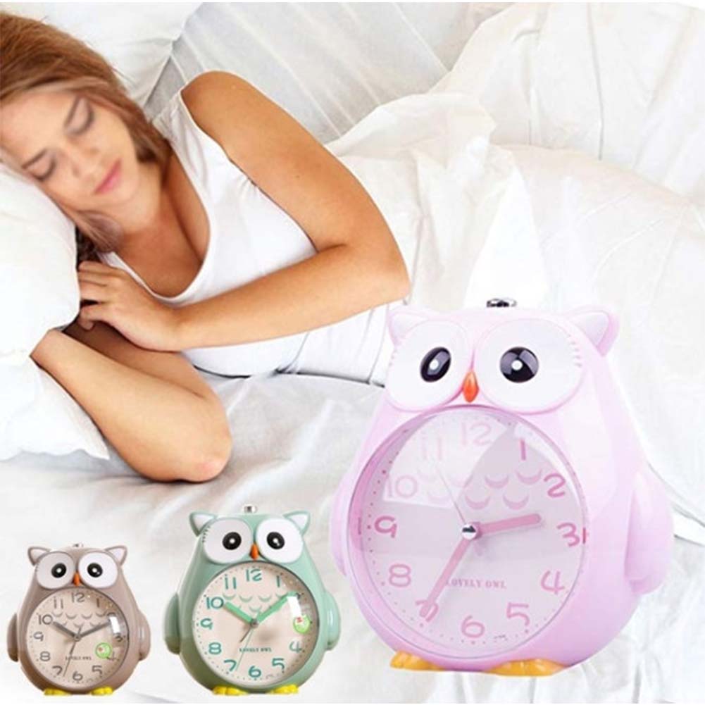 4 Inches Cute Cartoon Owl Shape Alarm Clock Silent Night Light Student Kids Pink