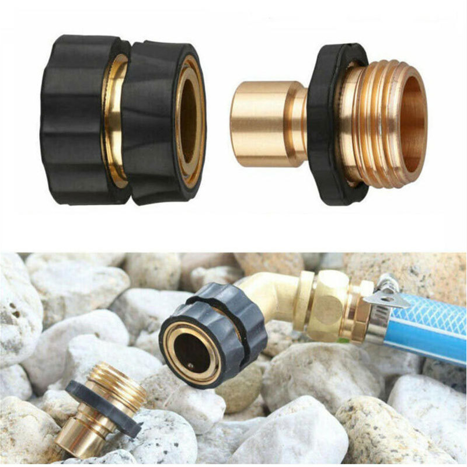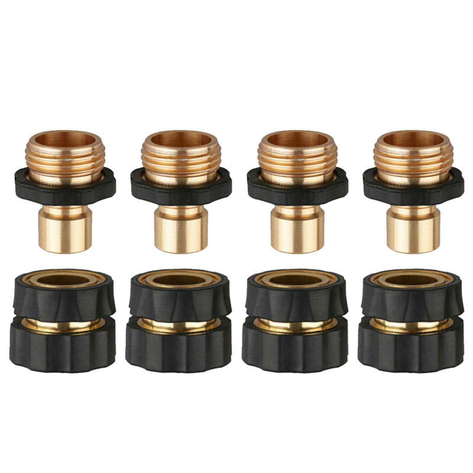 4 Pair 3/4 Inch Garden Hose Fitting Quick Connector Male Female Set Brass Adapter Kit