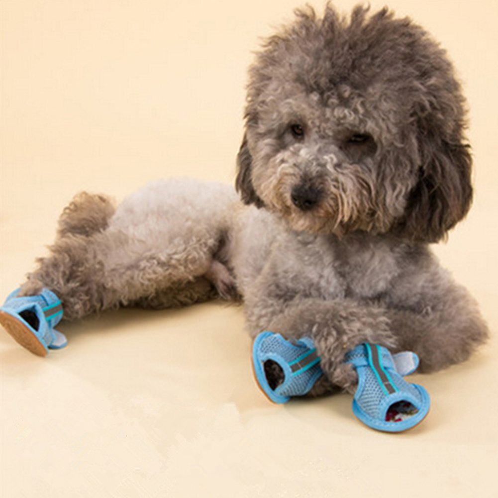 4 Pcs/set Pet Shoes Tendon Bottom Mesh Breathable Sandals For Dogs red_number 1 quantity