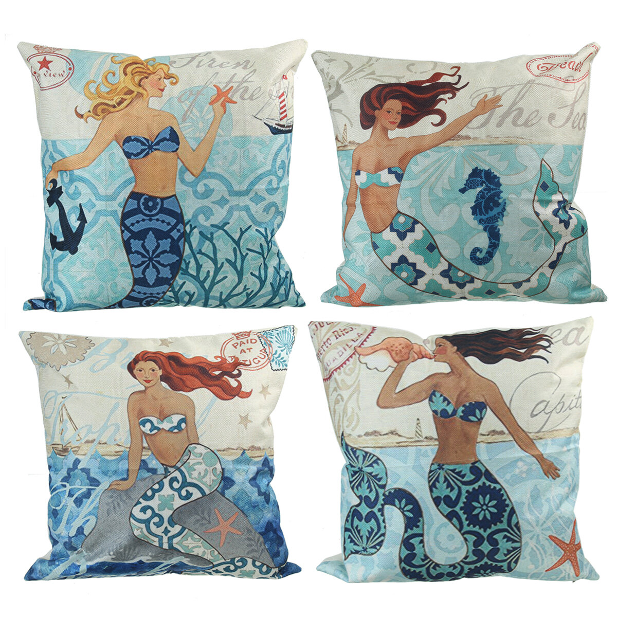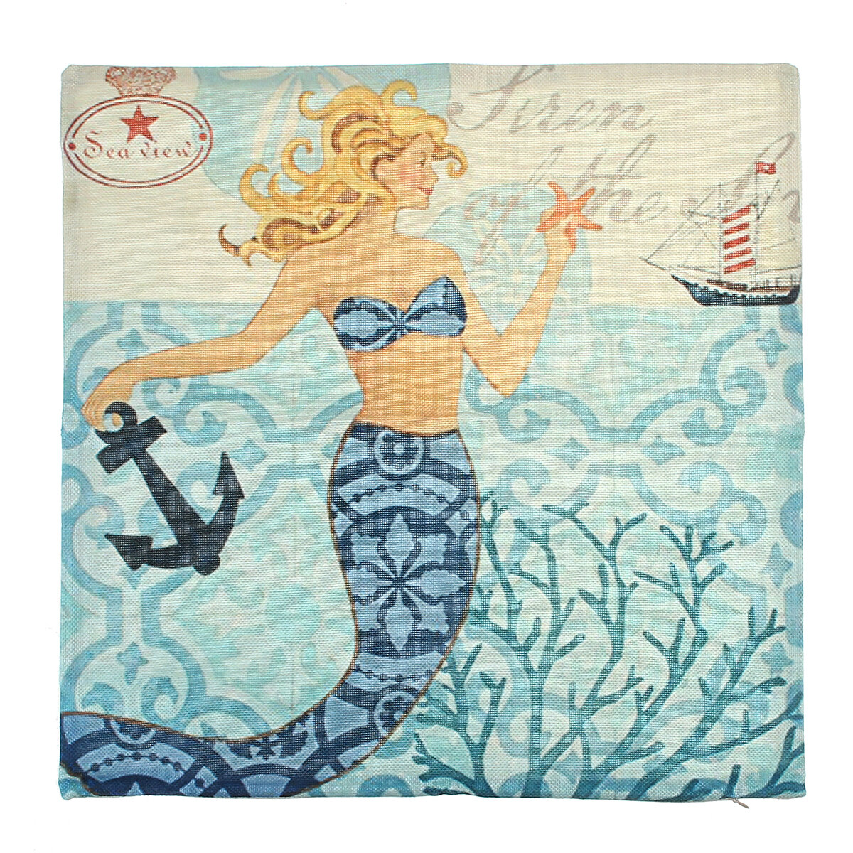 4 pieces 45×45 cm taie d’oreiller taie d’oreiller impression sirene coussin carre lin maison canape photographie accessoires