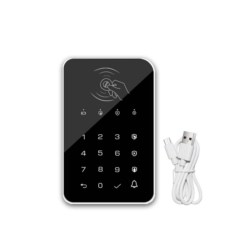 . Specification: La couleur noire Frequence de travail : 433MHz Il est coneu uniquement pour le systeme d'alarme G30/G50/G60/T90/G20/PG103 Wifi GSM. Emballage inclus: 1 x clavier tactile sans fil (rechargeable) 1 ceble USB 1 x manuel d'utilisation en anglais
