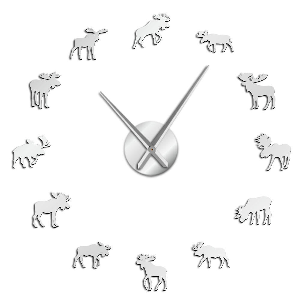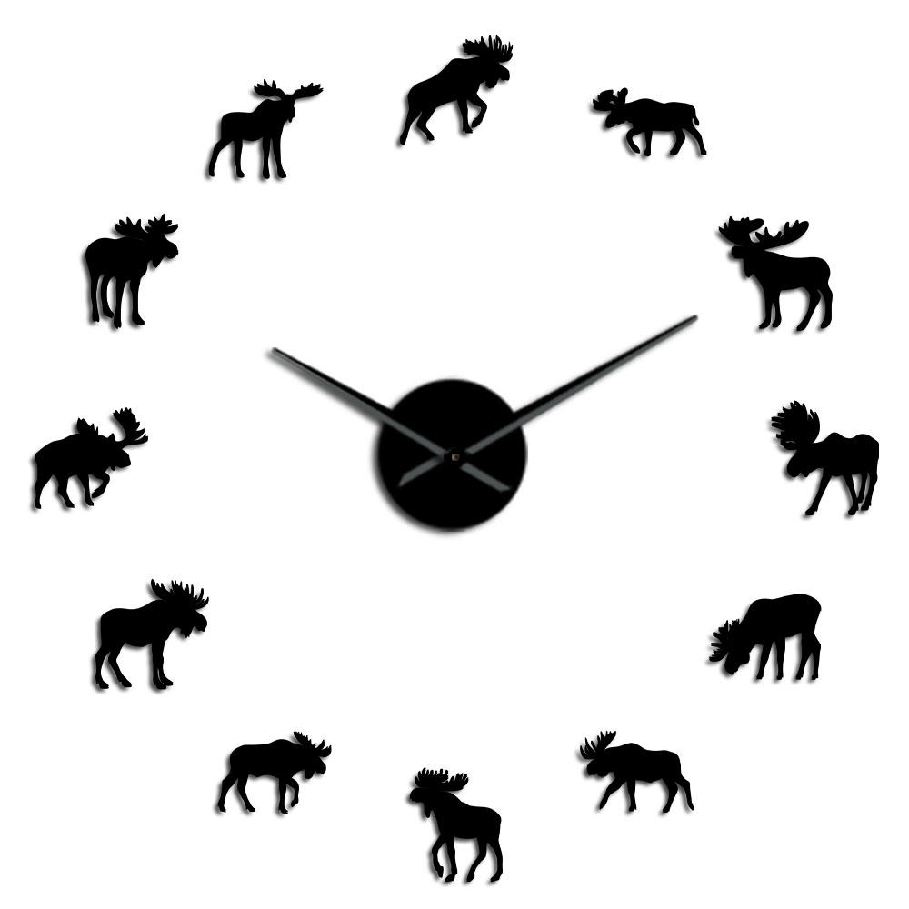47 pouces faune orignal bricolage geant horloge murale orignal Silhouette decorative sans cadre montre murale moderne Nature Animal Wall Art chasse horloge – Noir
