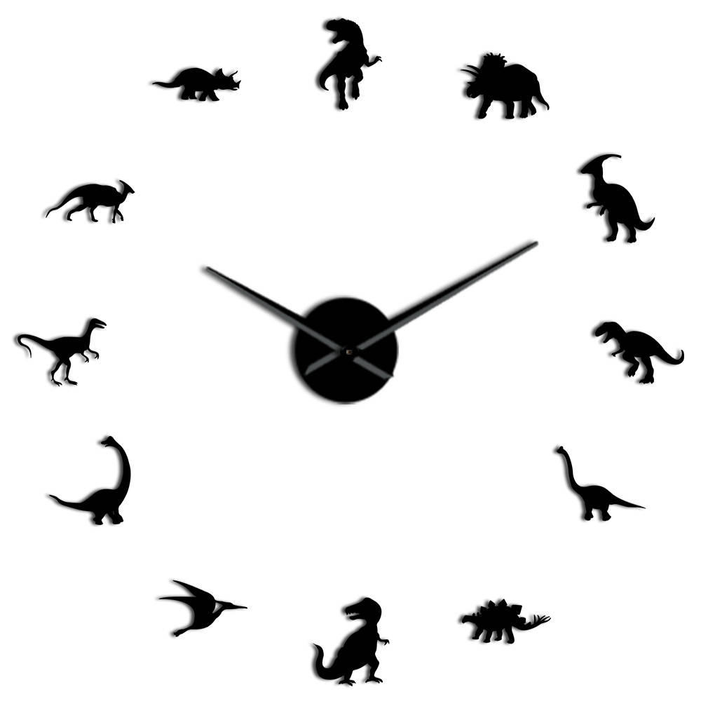 47 pouces Mur Art Dinosaures Jurassique T-Rex DIY Grande Horloge Murale Enfants Chambre Decoration Geant Sans Cadre Horloge Murale Dino Horloge Moderne Montre – Noir
