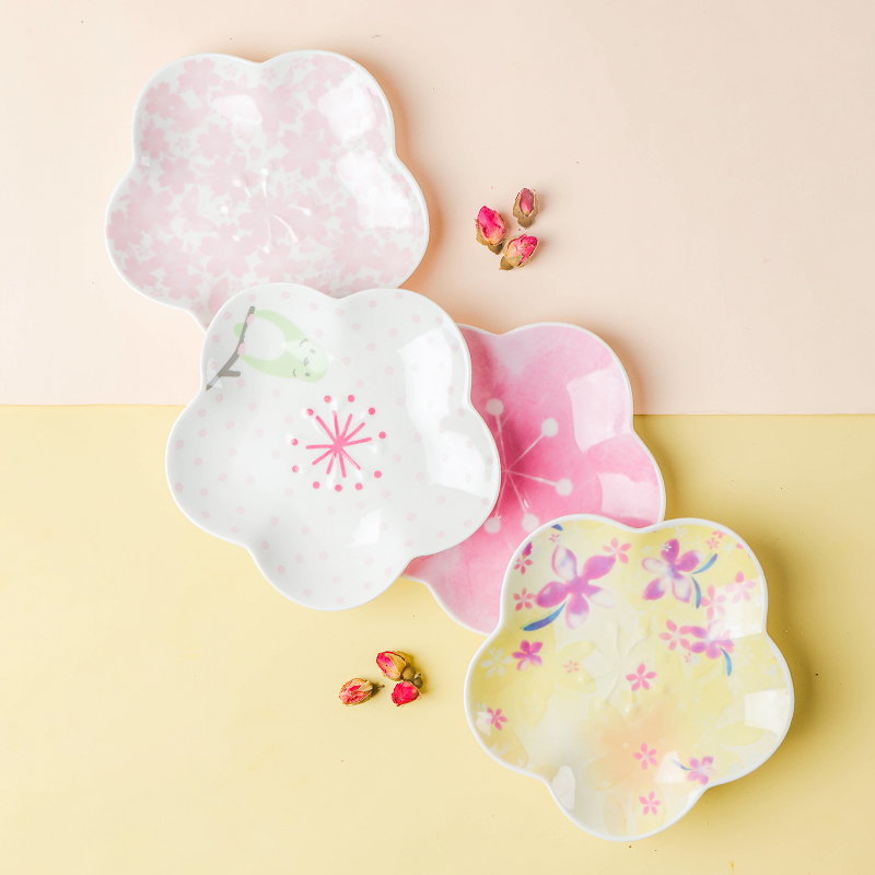 4Pcs/Set 5.5 Inches Ceramic Plum Blossom Shape Saucer Dish Set
