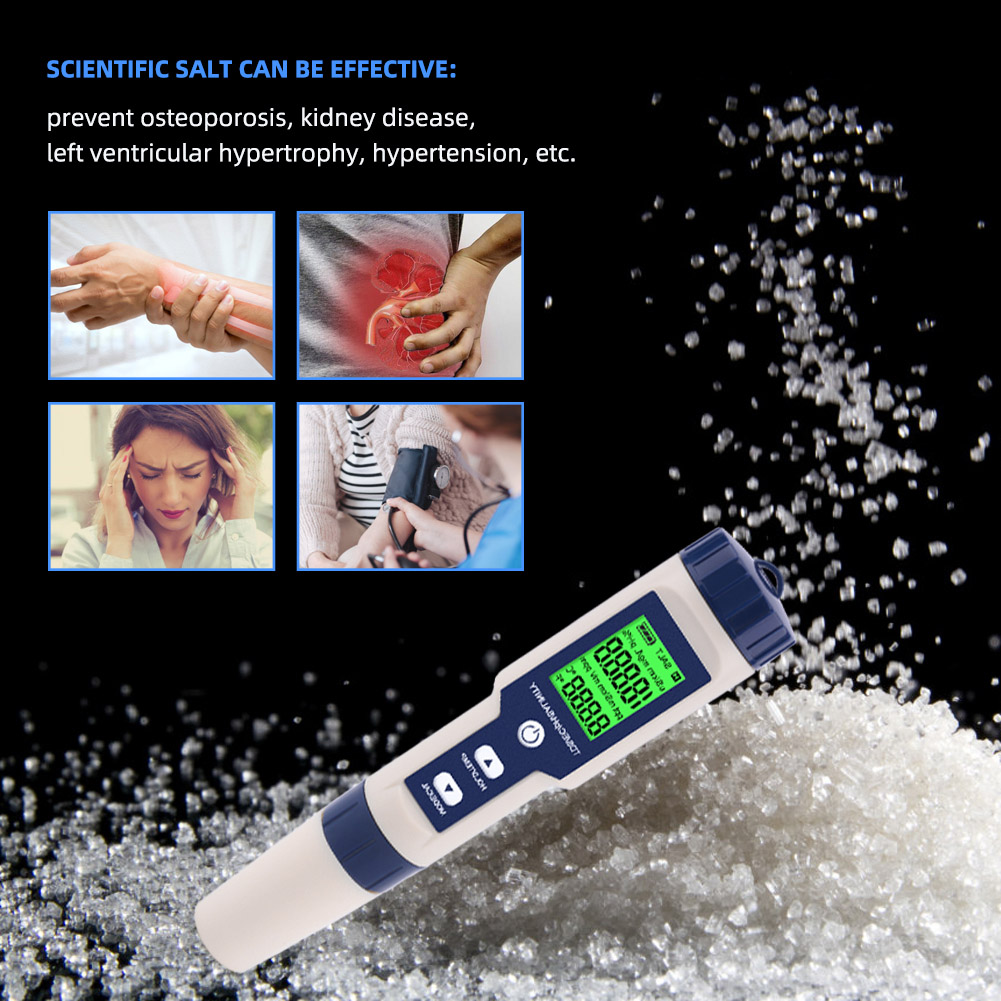 5 In 1 Digital Water Quality Monitor Tester Tds/ec/ph/salinity/temperature Meter For Swimming Pool Drinking Aquarium 9909 with Backlight