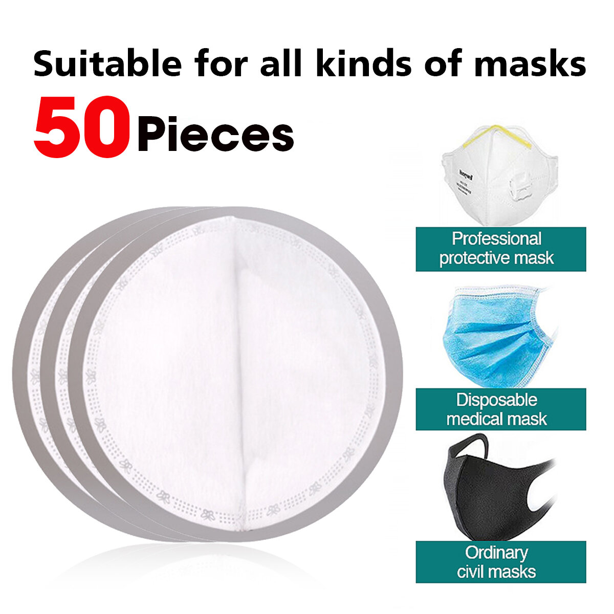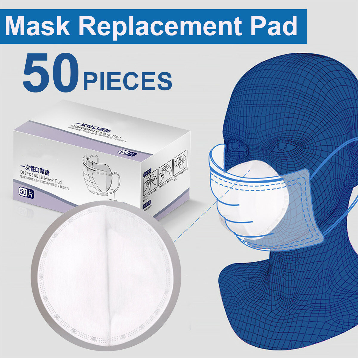 50pcs filtre jetable coussinets de masque de rechange en tissu souffle par fusion pour masque de protection