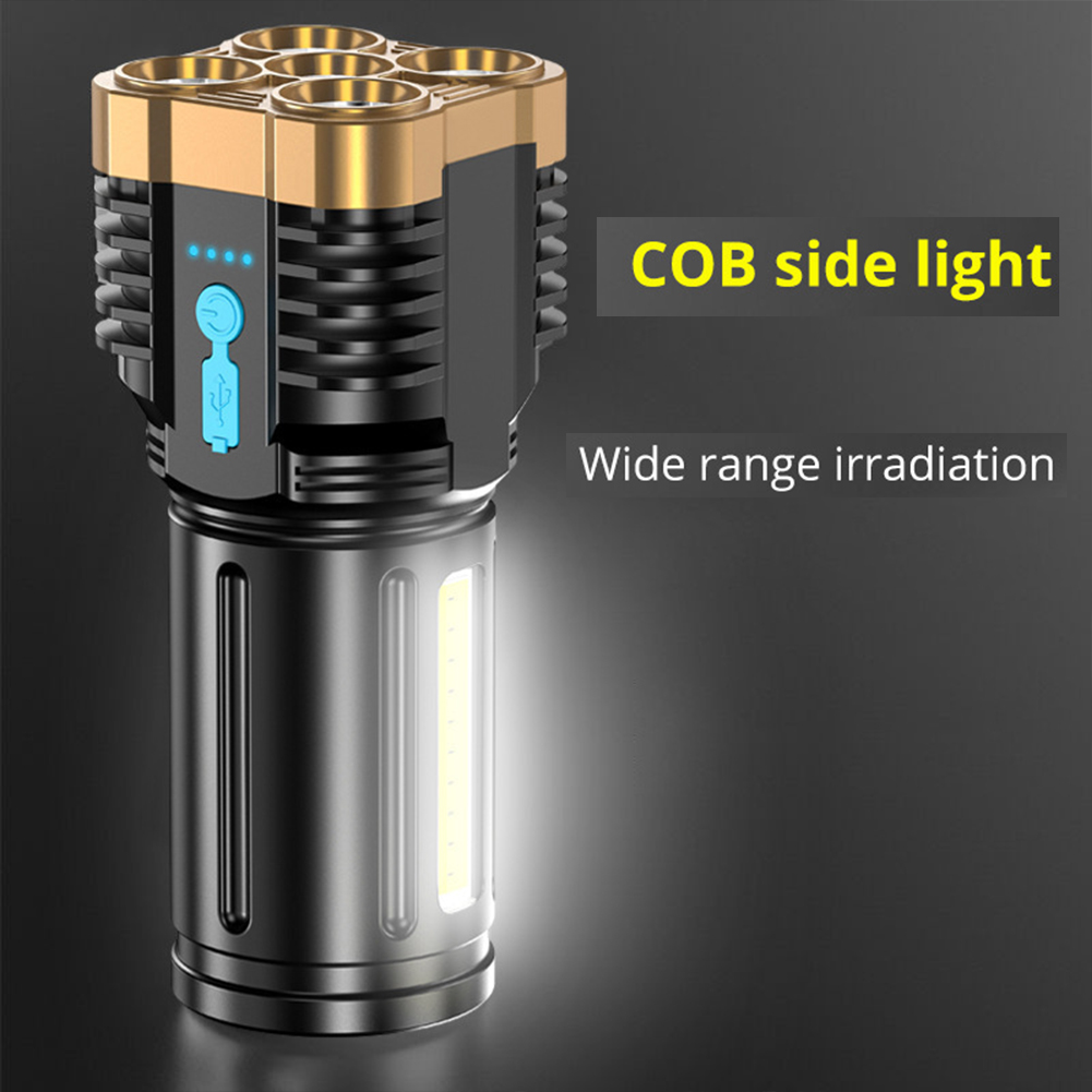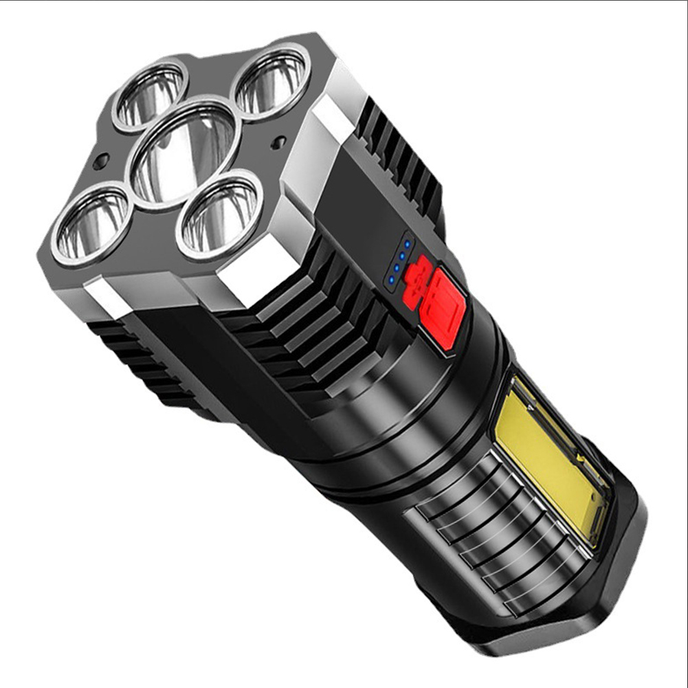 5led Super Bright Flashlight USB Rechargeable Outdoor Portable Waterproof Cob Side Light Work Multi-function Silver
