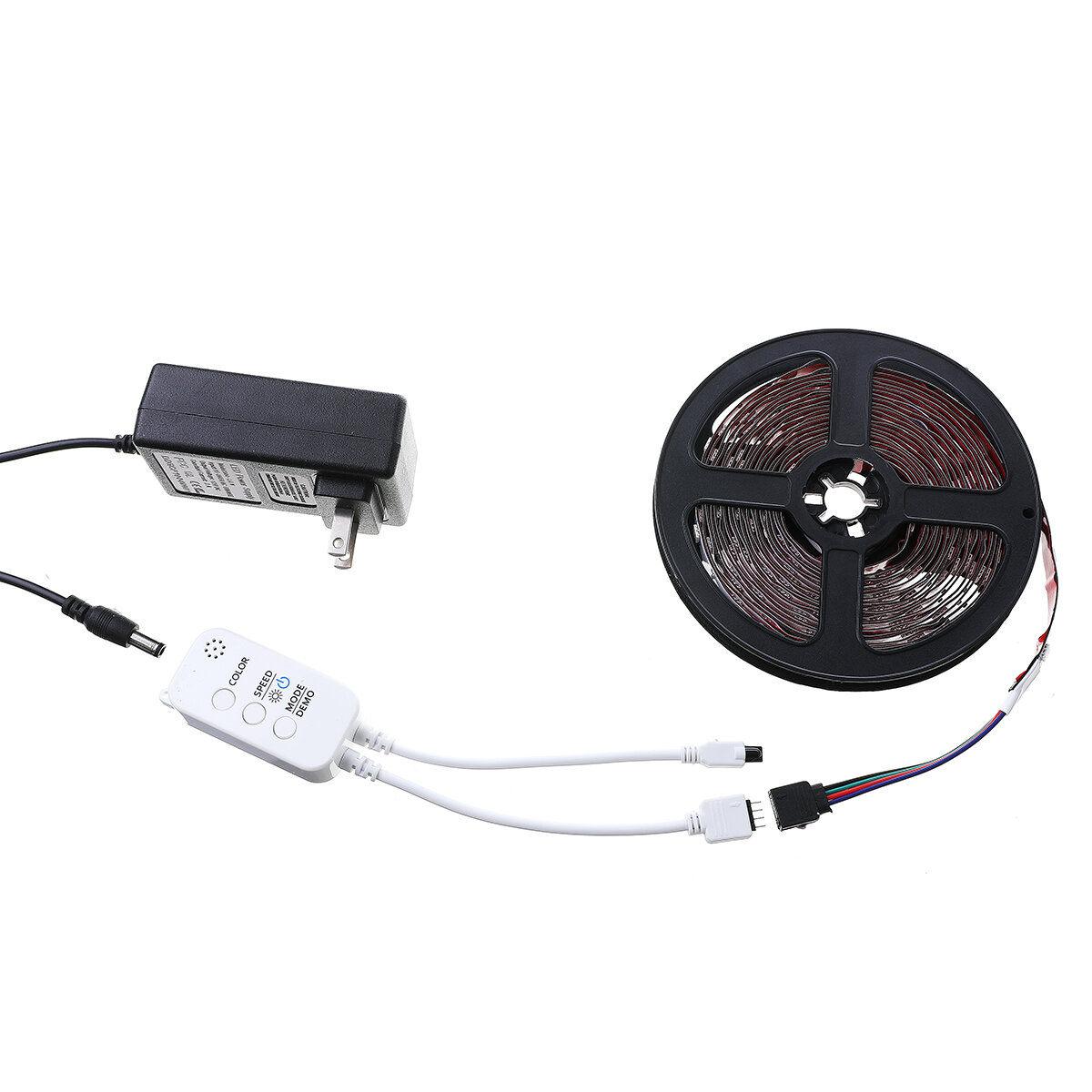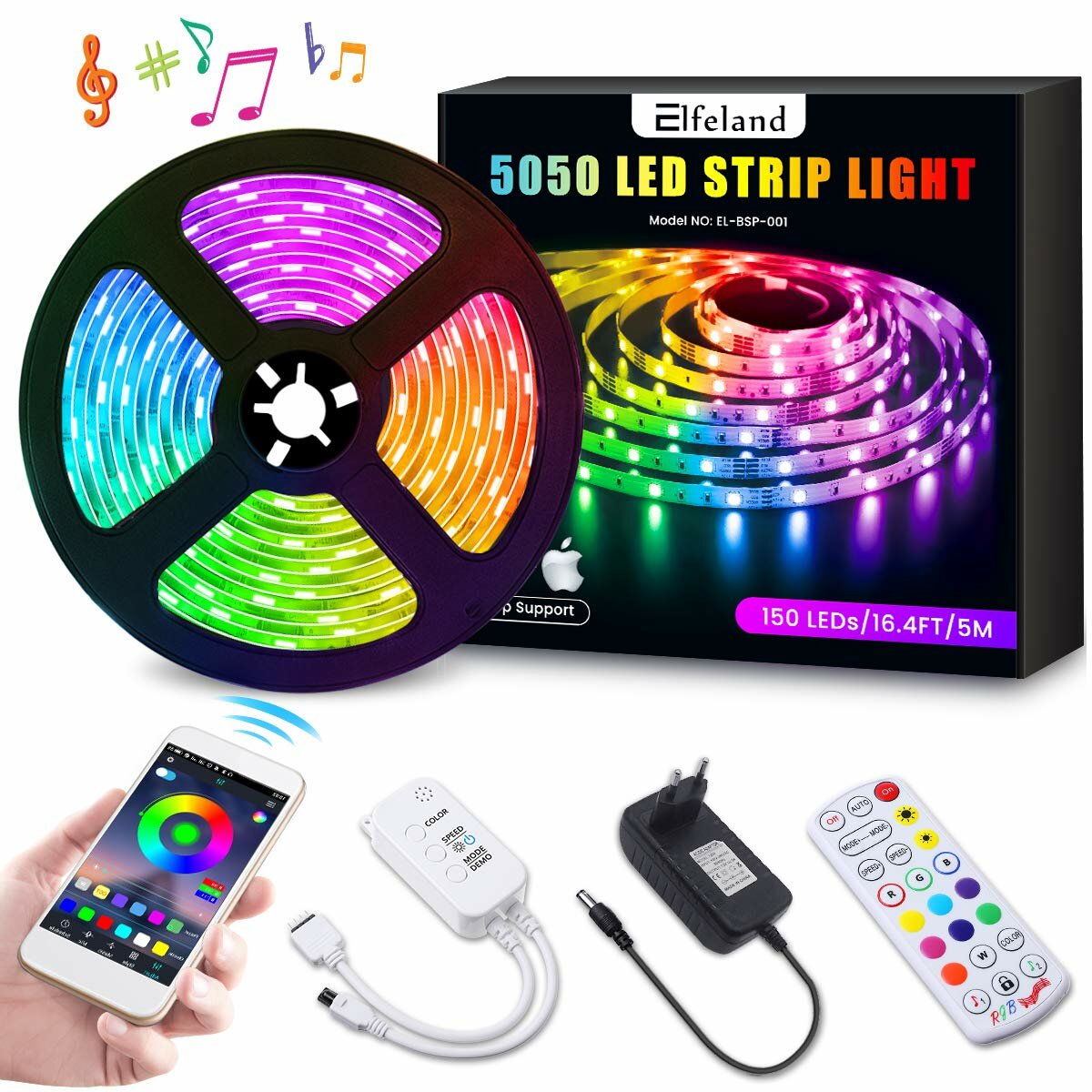 5M bluetooth Non-waterproof RGB LED Strip Light 5050 Music Lamp + 24Keys Remote Control + 12V 2A Power Supply Decorations Clearance Lights – EU Plu