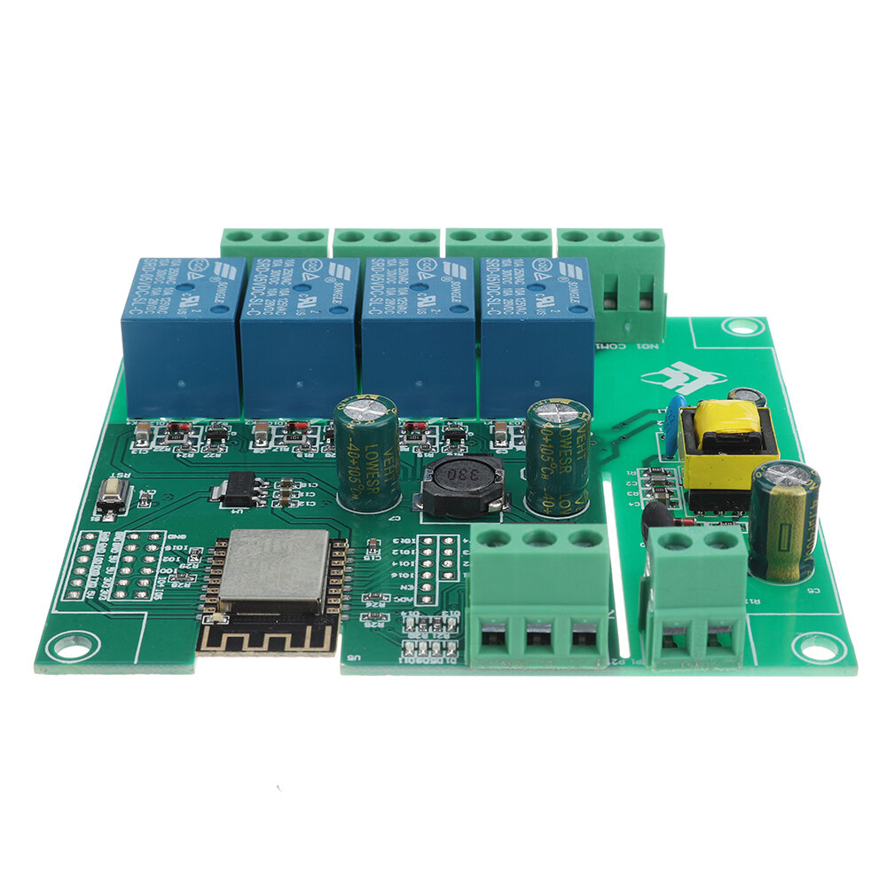 The ESP8266 four-way relay development board is equipped with ESP-12F WiFi module, all I/O ports are led out, and it supports AC90-250V/DC7-30V/5V and other power supply methods. Provide Arduin development environment reference code, suitable for ESP8266 secondary development learning, smart home wireless control and other occasions.