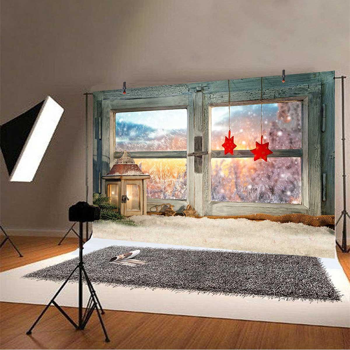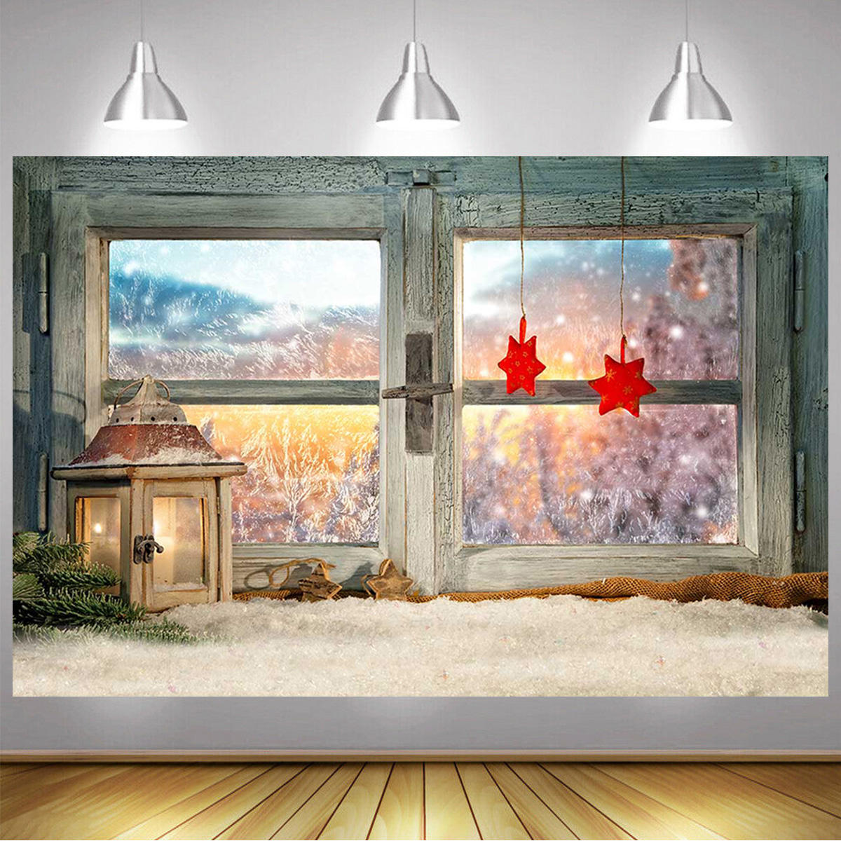 5x3FT 7x5FT 8x6FT fenetre de Noel etoile neige photographie toile de fond fond Studio Prop – 1,8 x 2,4 m