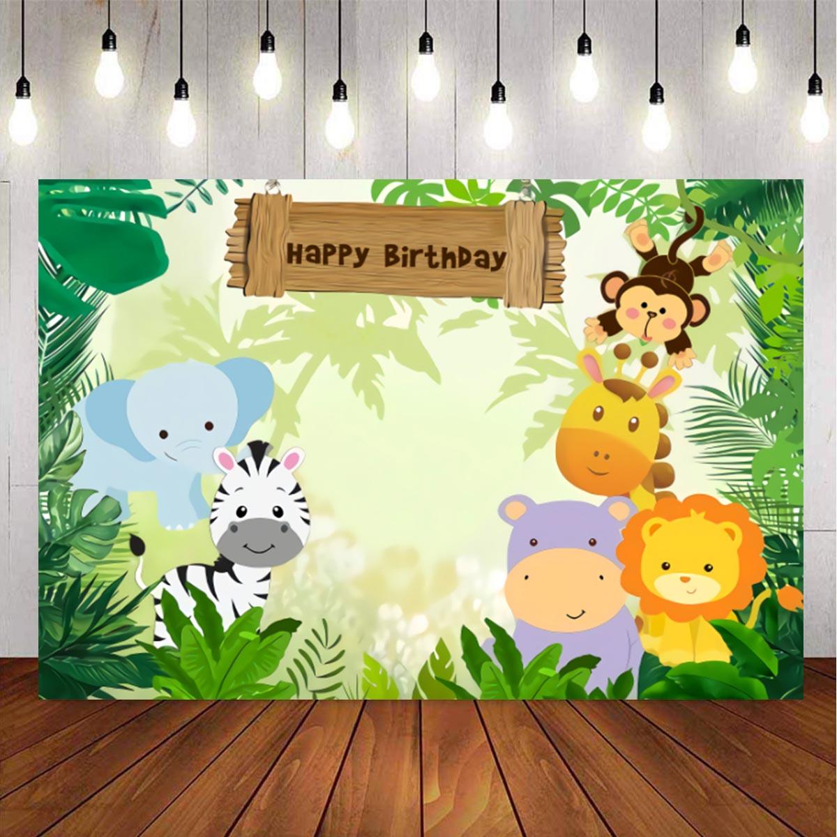 5x3FT 7x5FT 9x6FT Jungle elephant Lion joyeux anniversaire photographie toile de fond fond Studio Prop – M