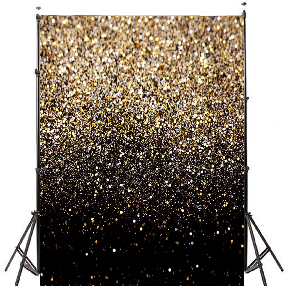 5x7FT Changement progressif Glitter Black Gold Dots Photographie Toile de fond Studio Prop Fond