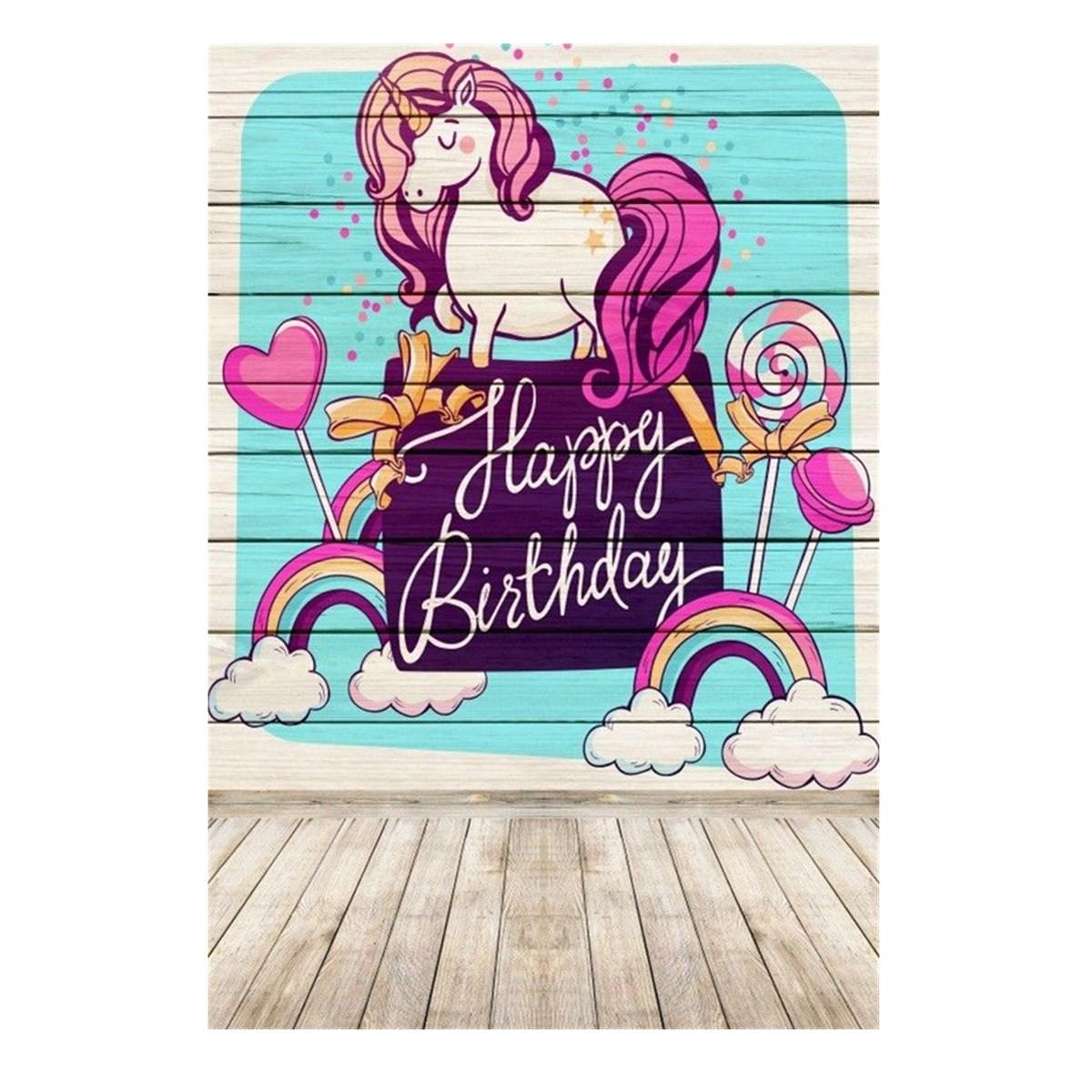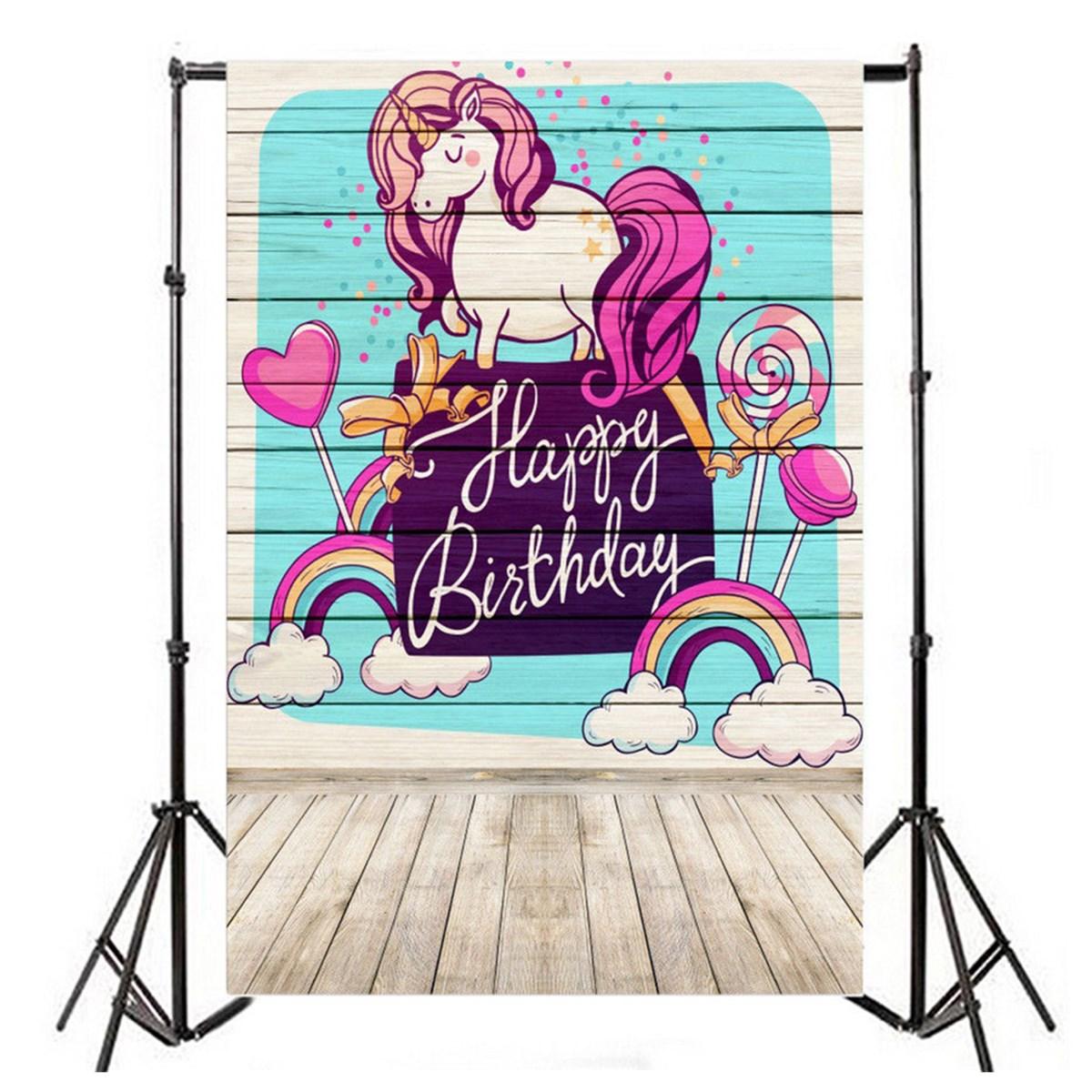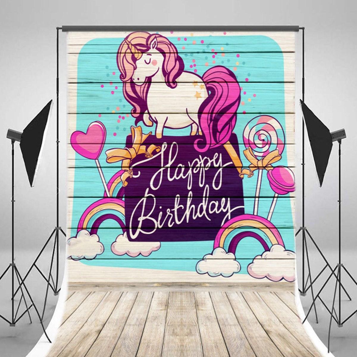 5x7ft joyeux anniversaire sucette Licorne photographie toile de fond Studio Prop fond