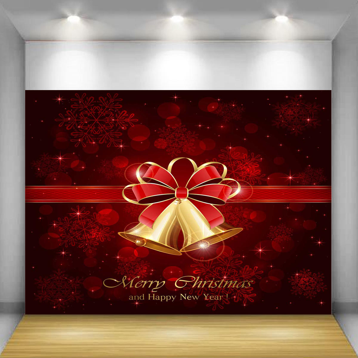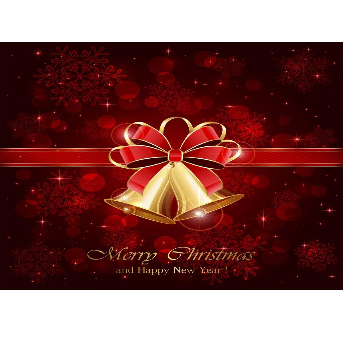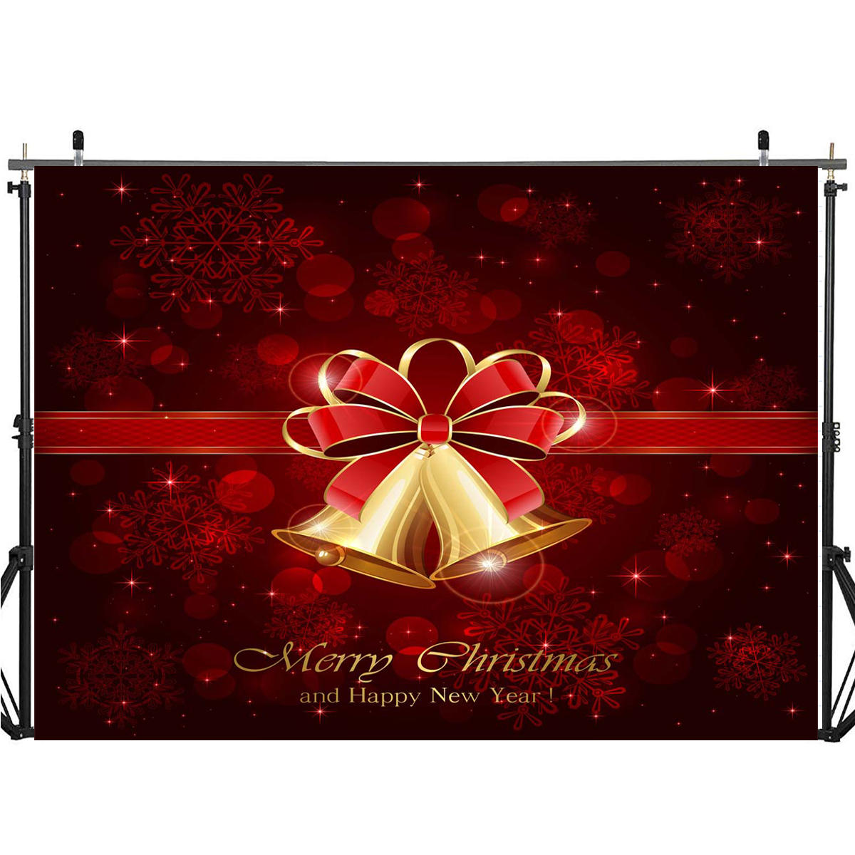 5x7FT Vinyle Joyeux Noel Bonne Annee Anneau De Cloche Photographie Toile de Fond Fond Studio Prop