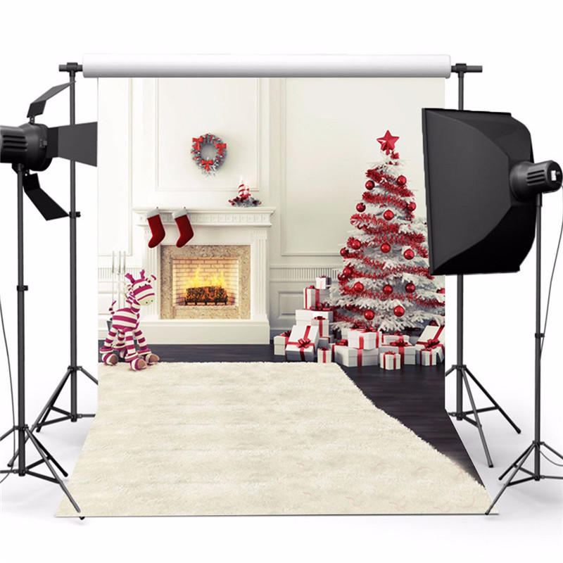 5x7FT Vinyle Sapin De Noel Cheminee Stockage Photographie Fond Fond Studio Prop