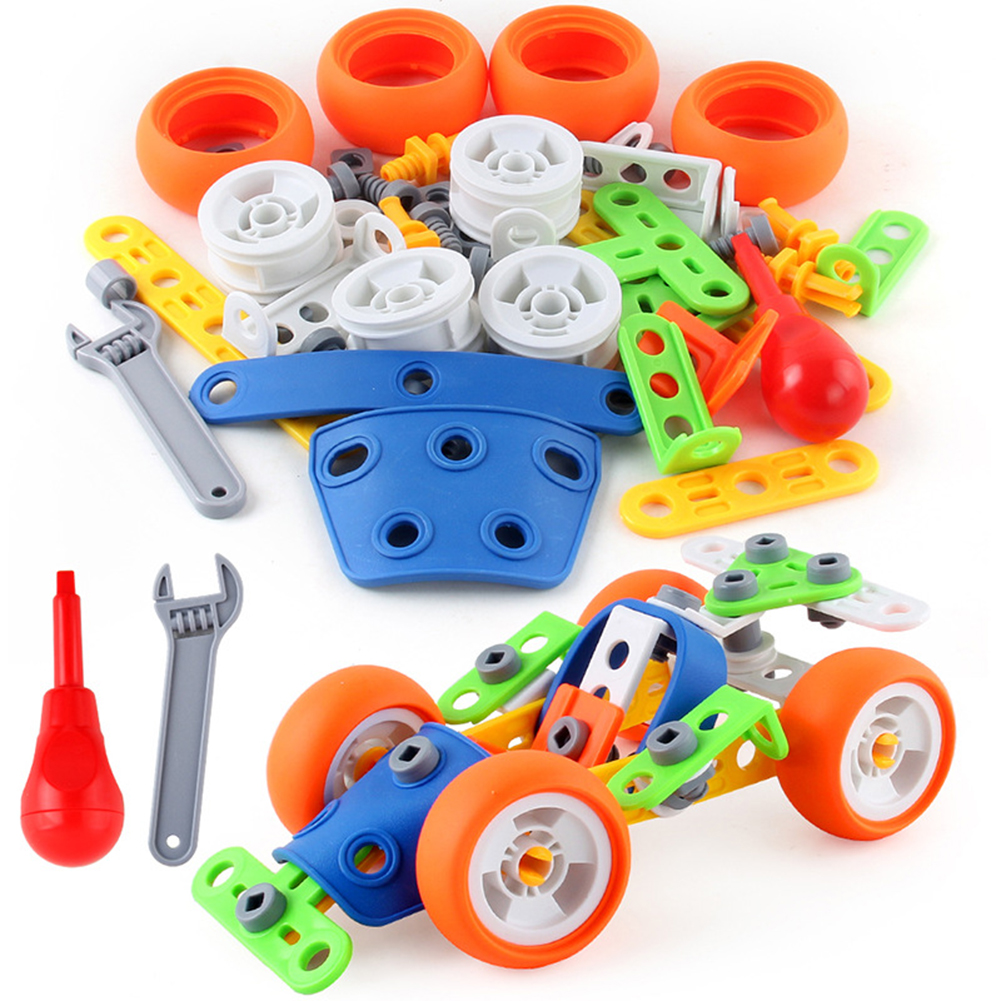 60 Pcs/set Children Diy Manual Assembly Toy Car Large Particle Building Blocks Disassembly Engineering Vehicle As shown