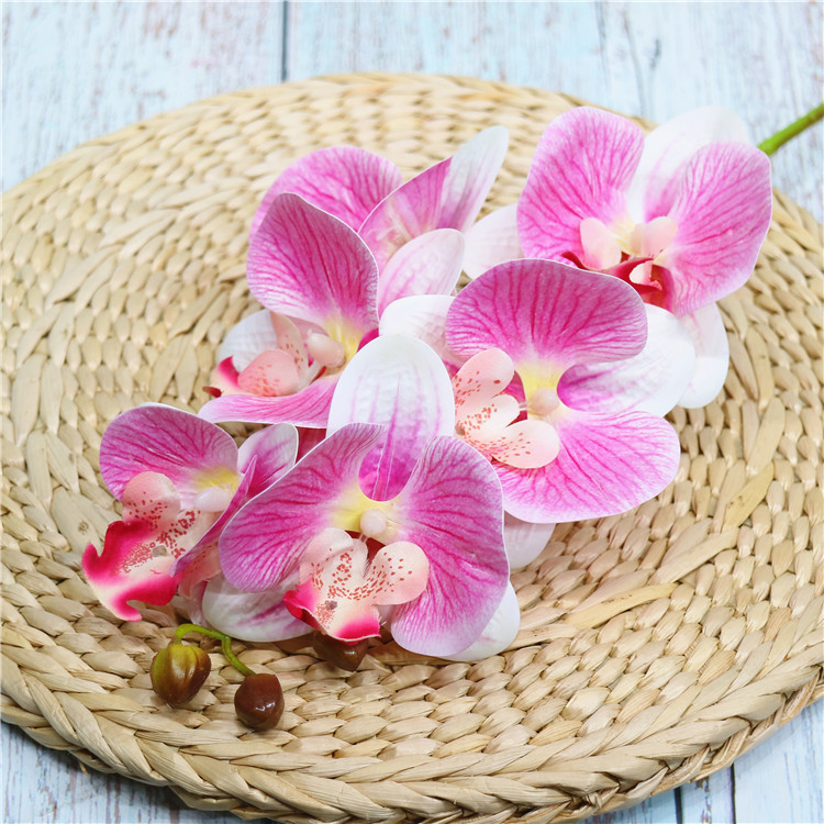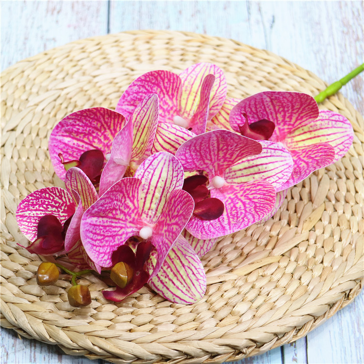 6Heads 3D Print Artificial Phalaenopsis Flower for Home Wedding Tabletop Decor Deep purple spot