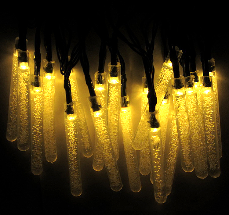6M 30LEDs Solar Powered Bubble Icicle Hanging String Light Wedding Party Decor warm light_(ME0004502)