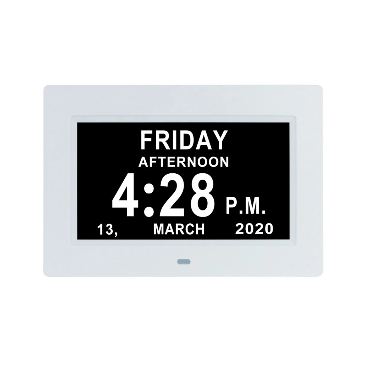 7 pouces LED cadre photo numerique grande horloge de police ajuste automatiquement la luminosite – Noir