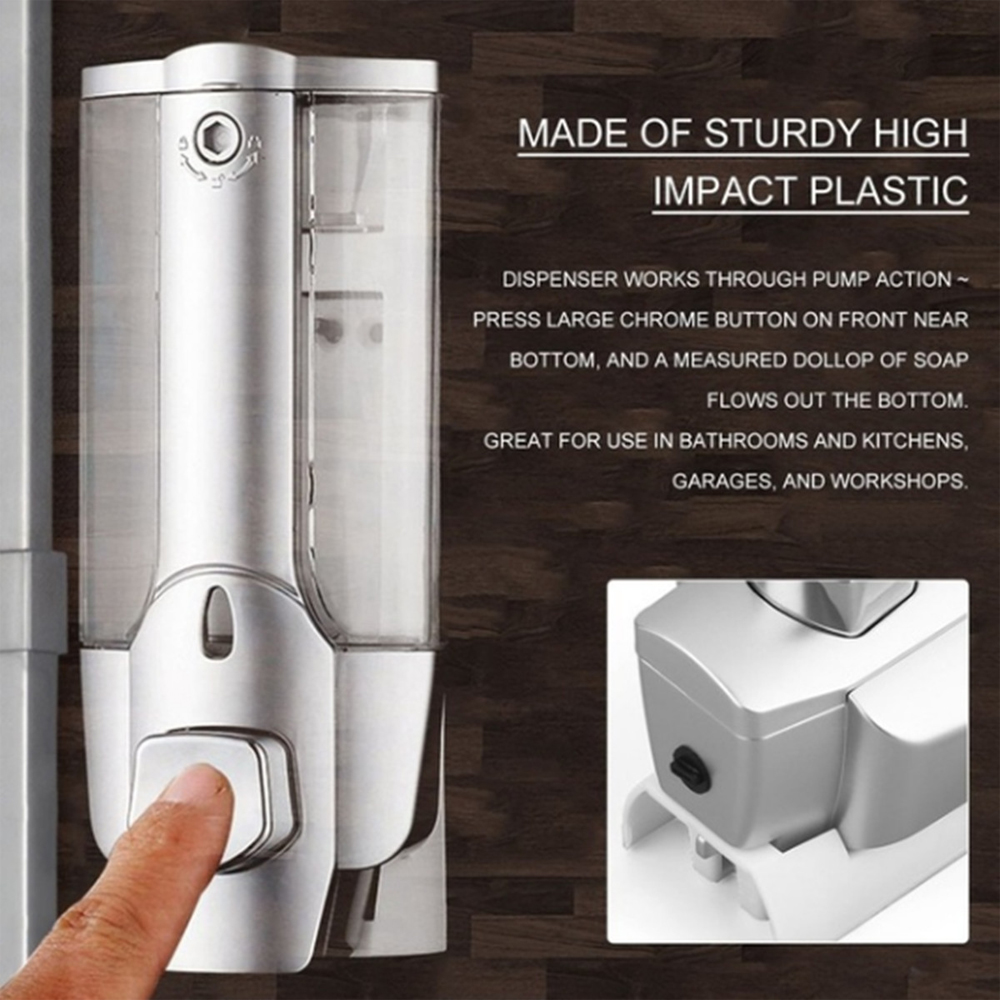 700ML Hand Soap Dispenser Wall Mount Shower Liquid Dispensers Containers with Lock for Bathroom Washroom Pump Silver