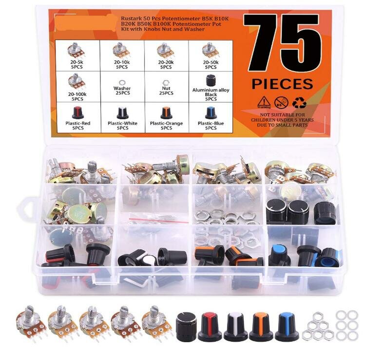 75 potentiometres B5K B10K B20K B50K B100K ohm Kit de potentiometre de contrele de Volume e cene rotatif lineaire unique