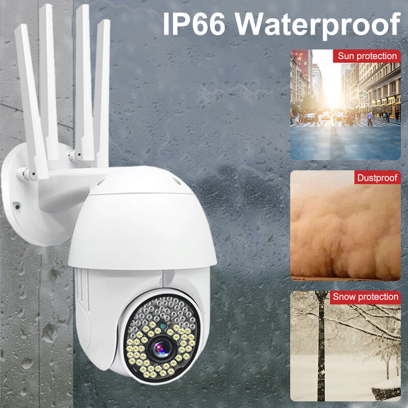 * IP66 etanche: la temperature de fonctionnement varie de -30 ? e 50 ?. Ce qui signifie que la camera de securite de mouvement est suffisamment puissante pour resister aux intemperies et au vandalisme, meme dans la tempete et la neige.