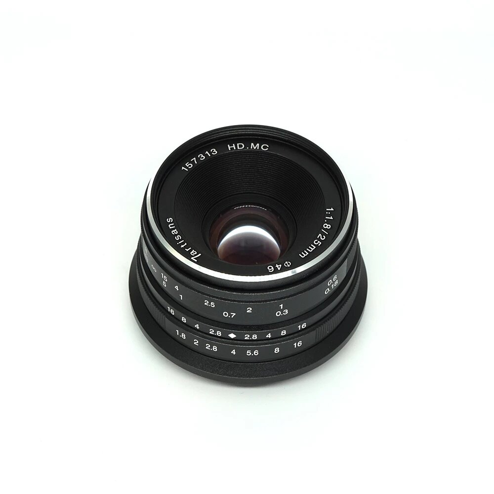 7artisans Objectif principal 25 mm F1.8 pour Sony E Mount pour Fujifilm pour Canon EOS-M Mout Micro 4/3 cameras A7 A7II A7R pour Panasonic pour OLYMPUS epm1 – macro 4/3 Noir