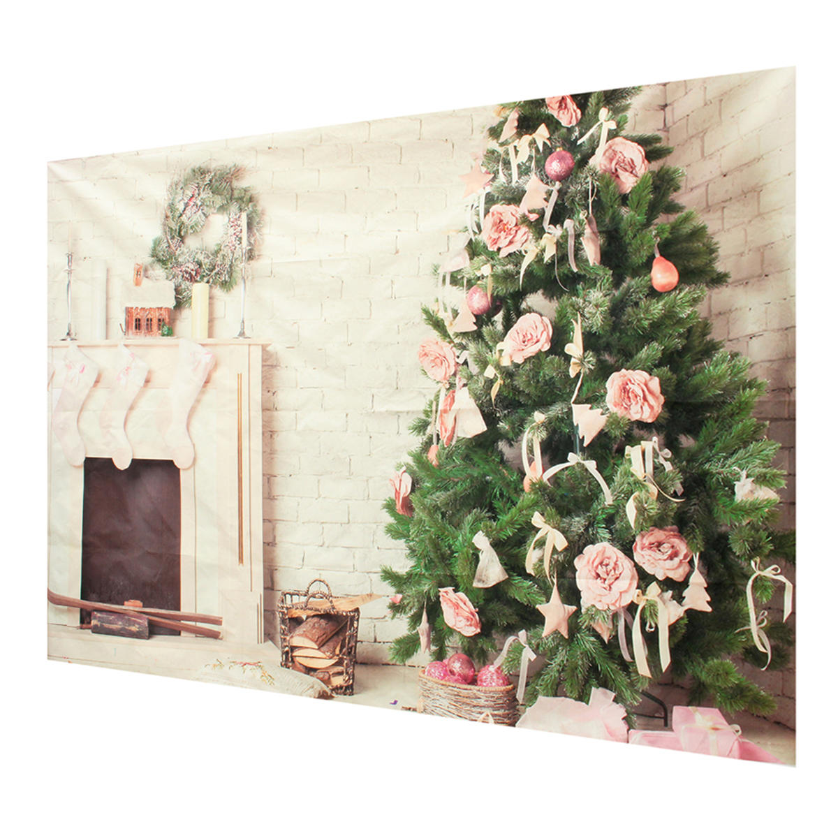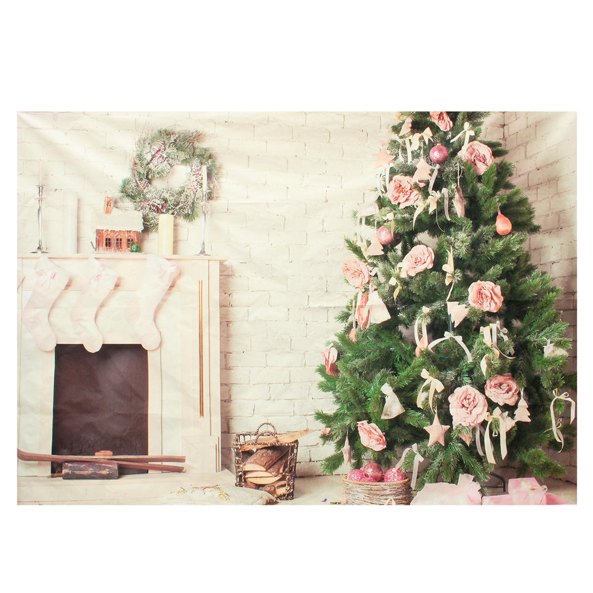 7x5ft arbre de noel cheminee photographie toile de fond Photo Studio prop fond