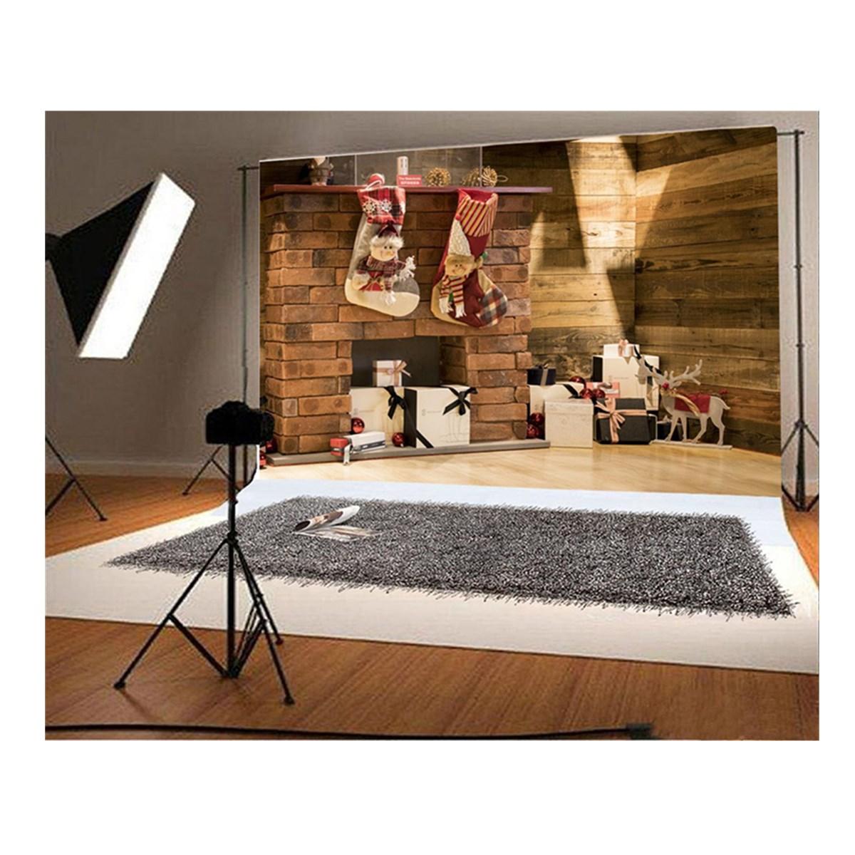 7x5FT noel cheminee cadeau bas photographie toile de fond Studio Prop fond