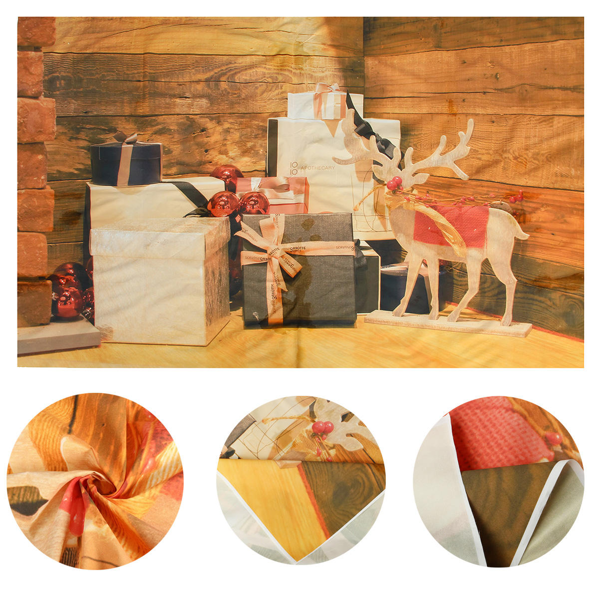 7x5ft Noel en bois wapiti cadeau de Noel photographie toile de fond studio prop fond