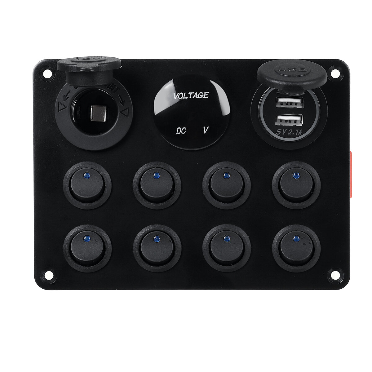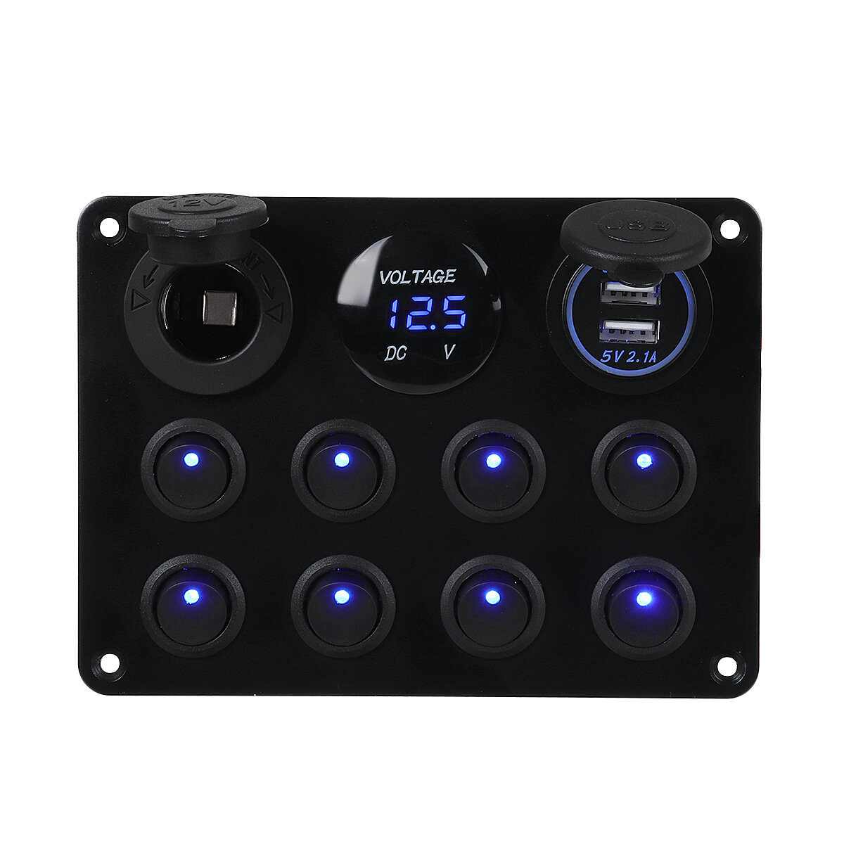 8 Gang 12V Switch Panel 11x15cm For Caravan RV Yacht Blue LED Dual USB + Display