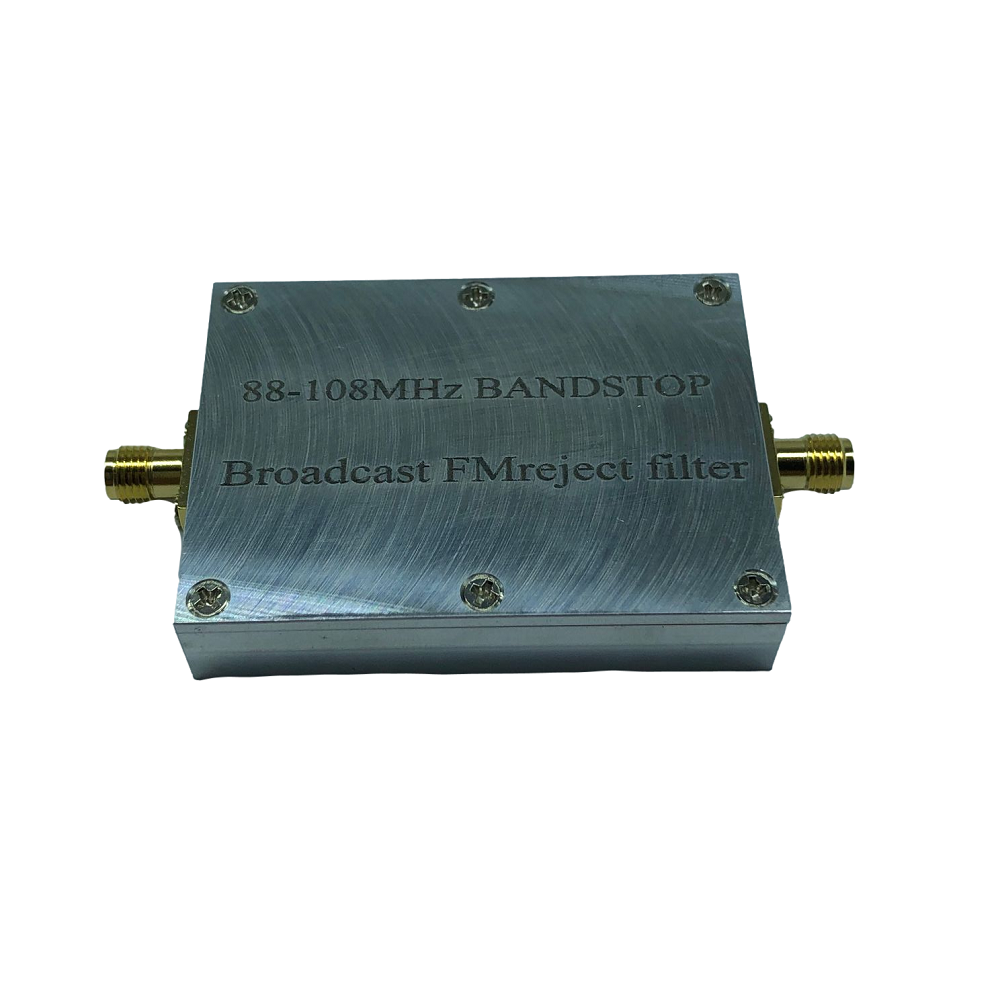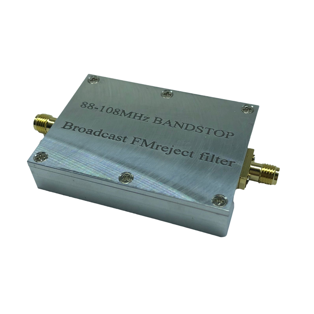 Bloque la bande FM de diffusion entre 88 et 108 MHz avec plus de 50 dB d'attenuation. Coneu pour une attenuation maximale entre 88 et 108 MHz et les points d'attenuation de 3 dB sont e 76 MHz et 122 MHz.