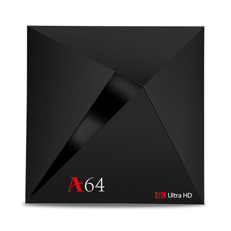 Specification: GeneralModel: A64Type: TV BoxQuantity: 1 PieceColor: Black Hardware & OS OS: Android 7.1.2CPU: RK3328 Quad-Core 64bit Cortex-A53 GPU: Dual-Core Mali-450RAM: 4GB DDRIII ROM: EMMC 64GB CommunicationWiFi: 2.4G/5G WIFI(2T2R), 802.11 b/g/n/acLAN: 1000Mbluetooth: 4.1Media Decoder format: 4K VP9 Video decoder, H.265/H.264 video decoder1080P other video decoders (VC-1, MPEG-1/2/4, VP6/8)Media format: Avi/Ts/Vob/Mkv/Mov/ISO/wmv/asf/flv/dat/mpg/mpegMusic format: MP3/WMA/AAC/WAV/OGG/DDP/HD/FLAC/APESupport photo format: HD JPEG/BMP/GIF/PNG/TIFF HDR: HDR10 and HLG modesHDD file system: FAT16/FAT32/NTFSSupport subtitle: SRT/SMI/SUB/SSA/IDX+USBHigh definition video output: 4K (4096x2160 pixel )3D: 3D video formatsInterfaceUSB host: 1 x High speed USB 3.0, 3 x USB 2.0Card reader: SD cardsLAN: Ethernet: 100/1000 standard RJ-45HDMI: HDMI 2.0a for 4k@60HzSPDIF: SupportAV: Support DC IN Power 5V/2A