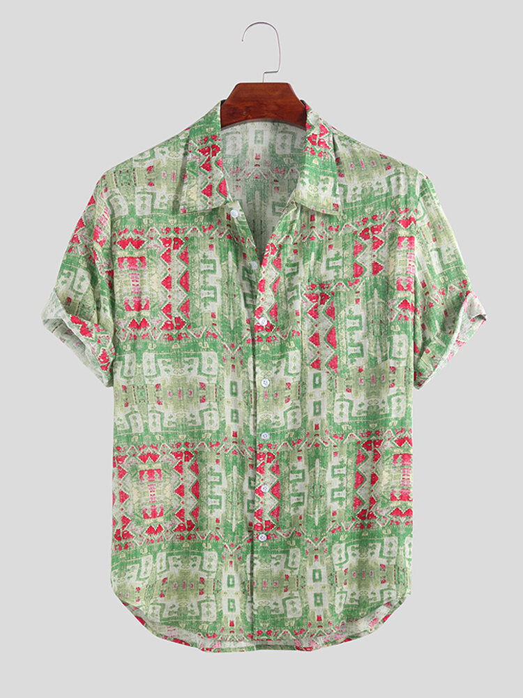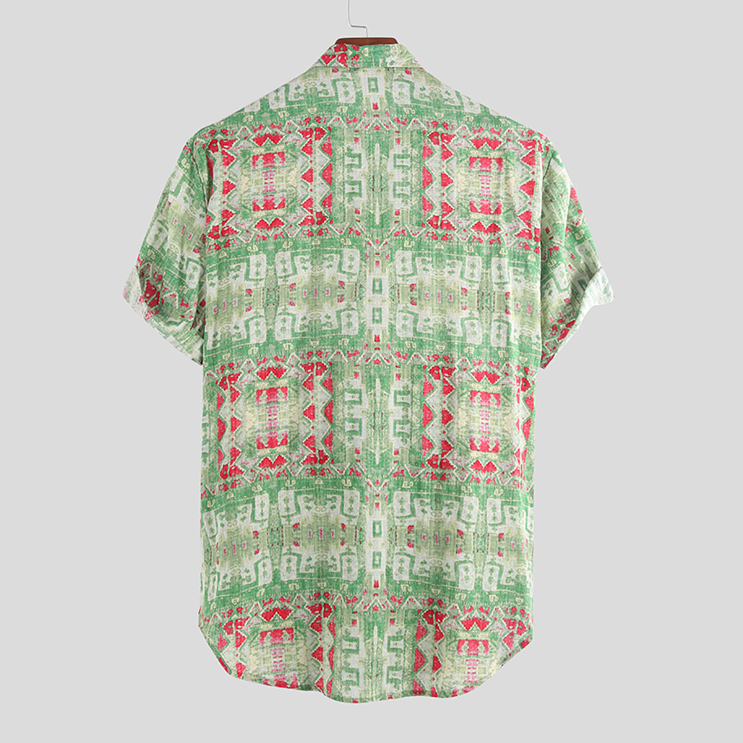 Abstract Batik Printing Short Sleeve Loose Shirts – 2XL Green