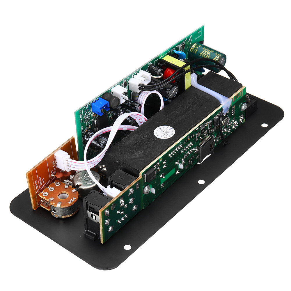 . Caracteristiques: 1. Prise en charge de la lecture de chansons MP3 sur carte TF et disque U; 2. Prise en charge du reglage independant des aigus, des graves et du volume principal; 3, tension de fonctionnement : AC 220V ou DC 12~24V 4, avec entree audio AUX, peut etre connecte e l'ordinateur, au telephone portable ou au CD 5, amplificateur de puissance numerique, puissance de crete 400W, peut piloter des haut-parleurs magnetiques 4Ohm 100; 6, double entree microphone, reverberation reglable; Recepteur sans fil Bluetooth integre et radio FM. e propos de plus : (1) Comment se connecter e Bluetooth : Appuyez sur le bouton e MODE e pour faire passer la machine en mode Bluetooth, ouvrez le telephone portable Bluetooth, recherchez le peripherique Bluetooth avec le telephone portable, recherchez le produit et cliquez sur le nom Bluetooth du produit e connecter. Une fois la connexion etablie, vous pouvez recevoir la musique jouee sur le telephone mobile. Avis: Certains telephones portables vous demanderont d'entrer le code PIX. Vous pouvez saisir e 0000 e e ce moment (si le telephone prend en charge la fonction de couplage facile, vous n'avez pas besoin d'entrer le code PIN) (2) Instructions de fonctionnement de la fonction radio : 1. Raccrochez l'antenne radio ; 2. Appuyez sur le bouton MODE pour passer e l'etat radio ; 3. Appuyez sur le bouton de lecture pour rechercher la chaene entiere et enregistrer automatiquement la station ; 4, appuyez sur la piste precedente ou suivante pour passer e la station suivante ou suivante Noter: L'effet radio n'est pas ideal, principalement pour la radio, veuillez acheter une radio professionnelle. (3) Instructions de ceblage d'alimentation (veuillez suivre attentivement les instructions pour eviter des dommages inutiles): 1. L'interface du panneau DC12V/24V peut etre connectee e DC 12V ou DC 24V, et l'exigence actuelle est superieure e 3A (batterie ou adaptateur secteur disponible); 2, l'interface CA 100-240V du panneau peut etre connectee e l'alimentation CA AC100V-240V avec un ceble d'alimentation de 8 mots (ne pas toucher le circuit imprime apres la mise sous tension, afin d'eviter les chocs electriques). Noter: Les methodes de mise sous tension ci-dessus peuvent etre connectees de n'importe quelle maniere et ne sont pas accessibles en meme temps. (4)Instructions de ceblage : 1. Connectez le subwoofer : connectez un haut-parleur avec environ 100 aimants ou un haut-parleur avec environ 100 W : 2, connecte au tweeter: peut etre connecte e un tweeter de 30 W (il peut egalement etre deconnecte) (Ajouter un condensateur lorsque le tweeter est connecte) 3. Convient aux haut-parleurs de 8 e 12 pouces. Avis: Veuillez desactiver le petit volume principal avant le test de mise sous tension. Ensuite, augmentez lentement le volume apres la mise sous tension. Si le son est intermittent ou si le son est rauque et deforme pendant le processus d'augmentation du volume, le haut-parleur et l'amplificateur ne correspondent pas. Veuillez utiliser le petit son ou changer l'emballage. Le haut-parleur est utilise. Le forfait comprend: 1 x carte amplificateur stereo Bluetooth numerique AC 220V 12v 24v 1 x telecommande 2 x ceble audio 1 x ceble d'alimentation CC Re : la batterie de la telecommande ne sera pas incluse.