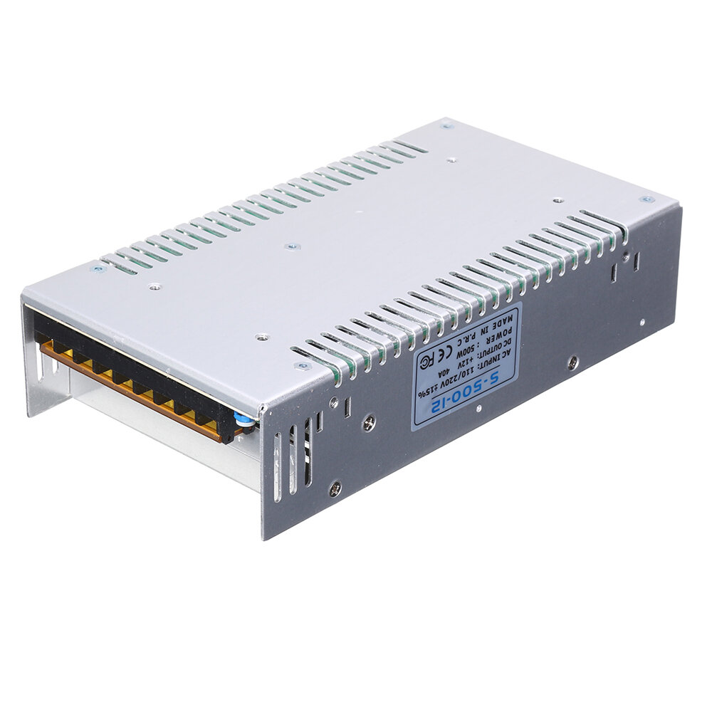 Technical Parameters:ModelS-500-12AC input voltage range110/220VACInput current0.25A/115V 0.5A/230VAC impulse currentCold-start current 20.5A/115V 20/230VDC output voltage12VDC output power500WRated output current40AOutput voltage error±1%Efficiency85%Wave and noise150mVp-pInlet stability±0.5%Load stability±0.5%Leakage current<0.5mA/240VACOverload protection105% - 150% rated power, automatically recoveryVibration10500Hz,2G 10min./1cycle,Period for 60min,Each axesCooling methodFan assisted cooling Working temperature and humidity- 20 ° ~ 60 ° c / 20% ~ 90% RH (no frost)Store temperature and humidity- 30 ° ~ 85 ° c / 10% ~ 95% RH (no frost)Safety standardsCE(EMC+LVD), FCC.Dimension215x115x50mmWeight0.85kg