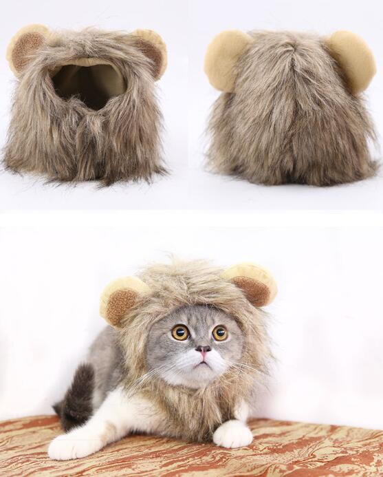 Adjustable Magic Sticker Lion Shape Cosplay Hat Wig for Pet Halloween Wear hat_M