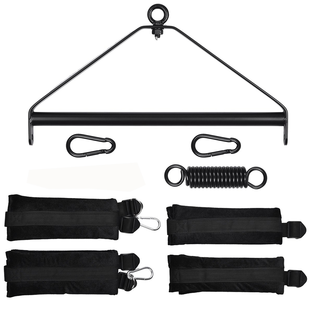Adult Indoor Swing Set with Adjustable Soft Straps Holds up to 800 lbs Black set (swing and tripod bracket + spring nut plug)