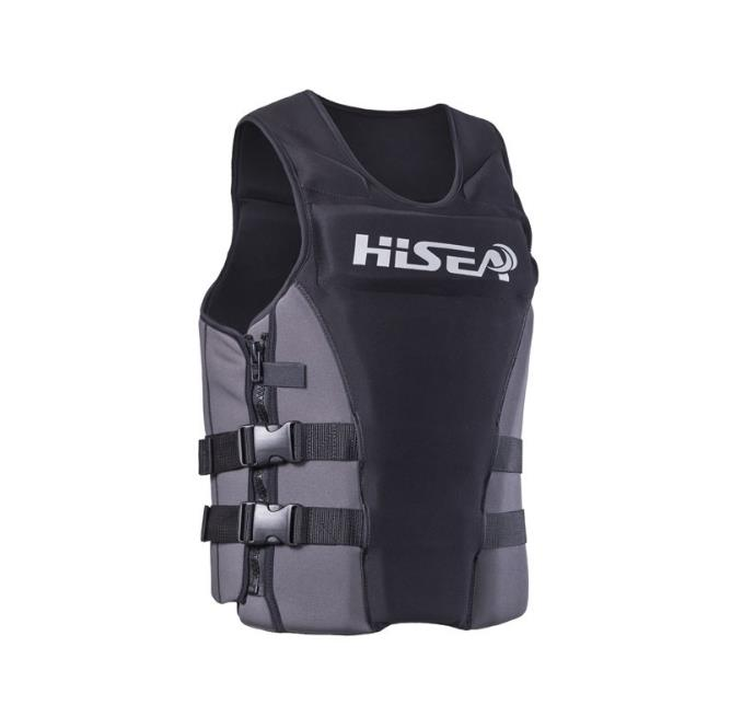 . Caracteristiques : Fabrique avec du neoprene - Haute quanlity. Deux boucles de securite - reglables. Fermeture e glissiere laterale pratique. C'est plus confortable quand vous vous penchez. Specification : Gilet de sauvetage en neoprene Gilet de sauvetage e 2 boucles Taille: S, M, L, XL, XXL, XXXL Materiel: Neoprene + Soft Nylon Remplissage: Coton flottant Couleur: noir + gris Paquet inclus: 1 x Gilet de sauvetage Details photos: