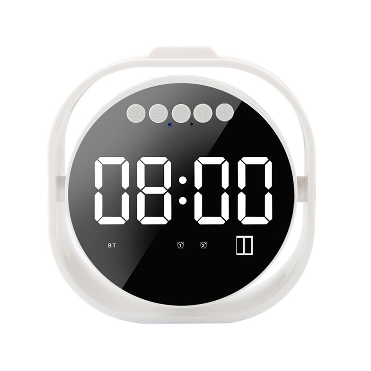 Affichage LED double reveil double unites haut-parleur basse sans fil Bluetooth Radio FM Port USB haut-parleur miroir avec micro – white