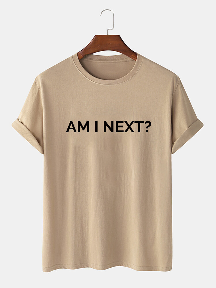 Am I Next Slogan Shirts 100% Cotton Short Sleeve Tees T-shirts – Khaki S