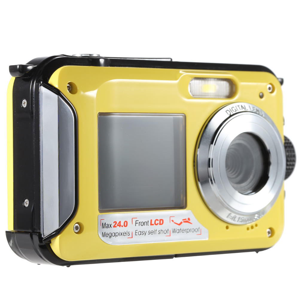 Amkov W599 24MP 2.7 ecran Double ecran etanche Anti-Shake 16X Zoom 1920×1080 HD – Jaune
