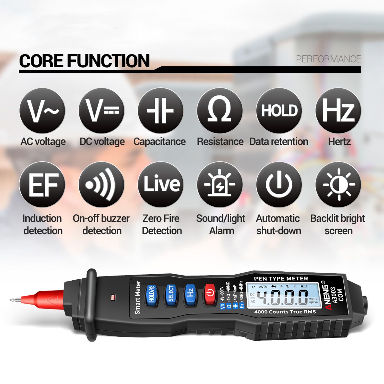 Measuring AC / DC voltage, resistance and capacitance. Non-contact voltage detection. Data retention. Hertz-detection. Induction detection. On-off buzzer detection. Zero fire detection. Sound/light alarm. Automatic shut-down. Backlit bright screen, greatly enhance the reading experience. Integrated multimeter design not only greatly expands the testing applications, but also let you not worry the multimeter consume too much space.