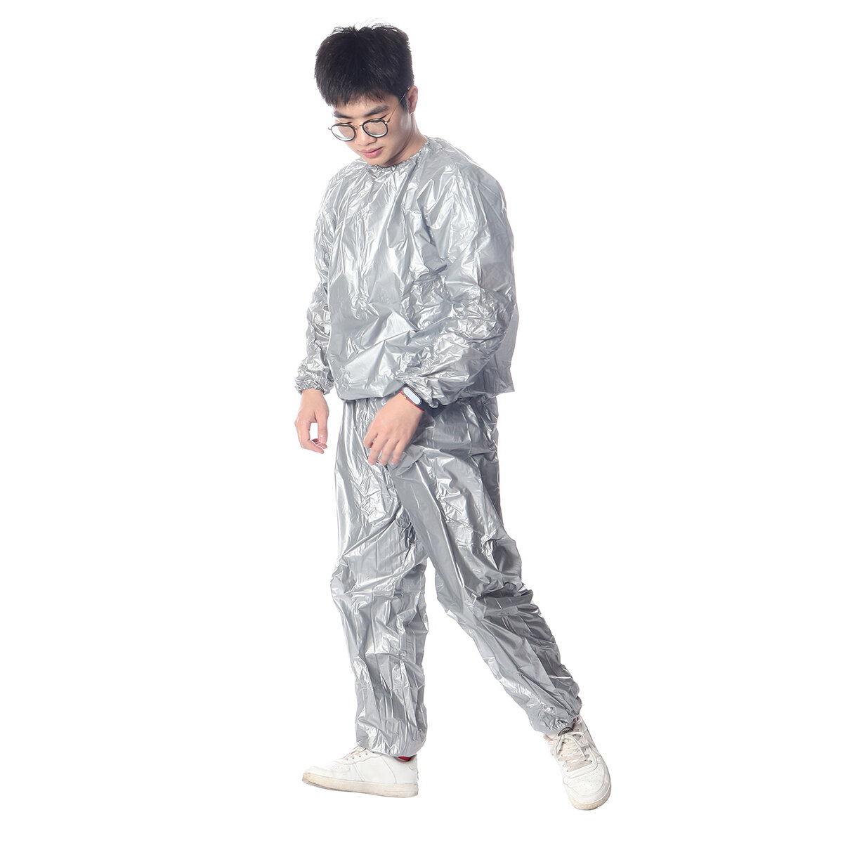 . Fonctionnalites: - Convient pour aider e perdre du poids, les sports de plein air, tels que la course, le saut, le cyclisme et les balles, etc. - Accelerez la combustion des graisses et mincissez. - Taille, poignets et chevilles elastiques, qui garantissent qu'il vous va. Caracteristiques: Materiel: PVC Couleur: argent Taille: L / XL / 2XL / 3XL Emballage inclus: 1 x costume de sauna Photos de detail: